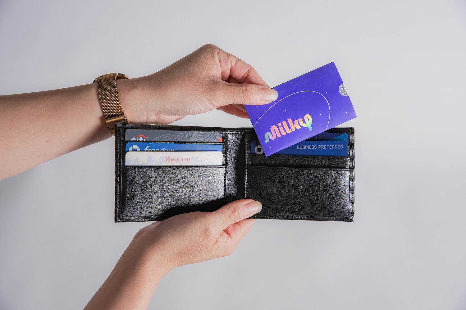 Milky perfectly fits in your pocket, wallet or purse with its ultra thin, credit-card design.